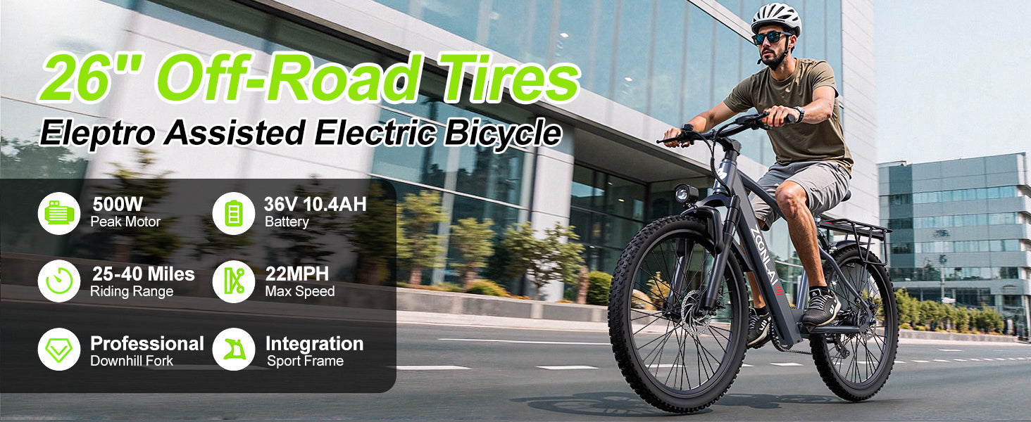 Zoonlai GravelHawk electric bike is designed for riders seeking power, style, and reliability. Equipped with a powerful 500W motor and a 36V, 10.4AH battery, it boasts a range of 25-40 miles per charge. Its ergonomic frame allows for bidirectional riding, whether on city streets or off-road.