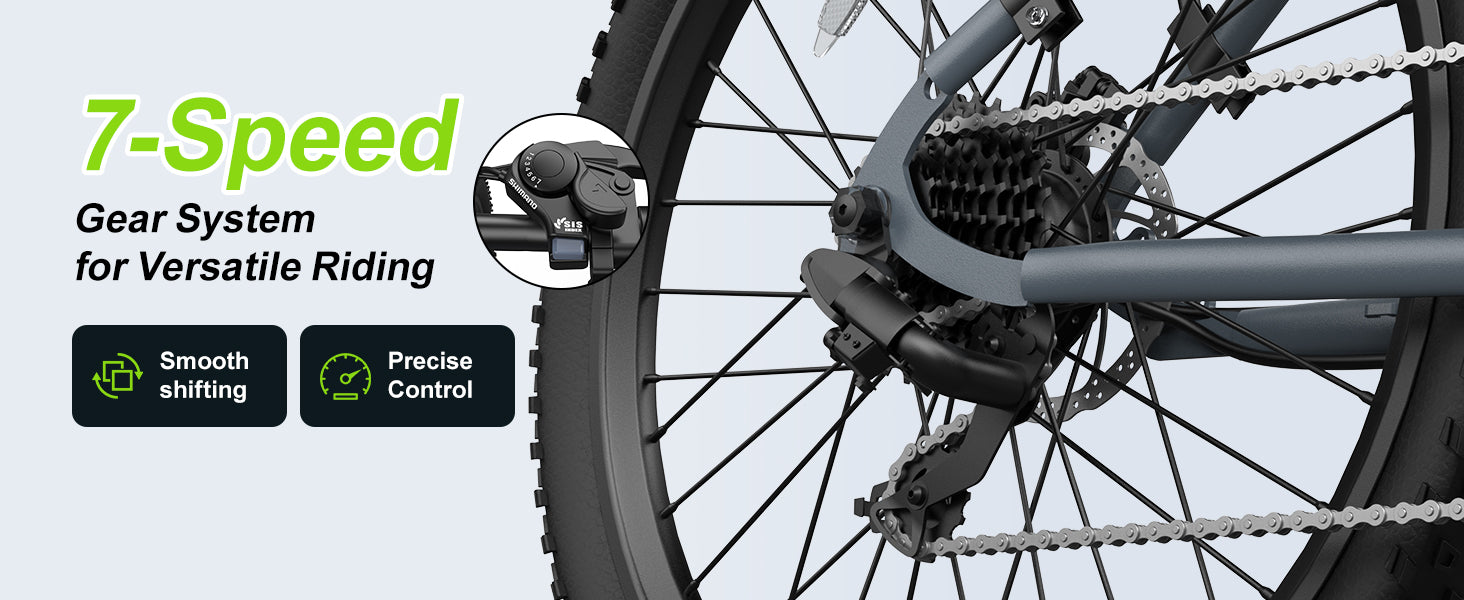 Equipped with 26" × 1.95" fat tires, front suspension fork, and a 7-speed gear system, the UrbanX handles city roads, gravel, sand, snow, and light trails with ease.